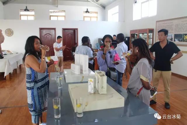 2017年8月4日,來(lái)自非洲肯尼亞、馬拉維、南非、塞拉利昂、阿爾及利亞、貝寧、布隆迪、吉布提、喀麥隆、科特迪瓦、馬達(dá)加斯加、馬里、尼日爾、剛果(金)14個(gè)國(guó)家的46名國(guó)際友人來(lái)到【云臺(tái)冰菊】參觀、考察、調(diào)研、交流。本公司董事長(zhǎng)宋曉龍先生熱情接待了來(lái)訪友人,并親率云臺(tái)冰菊接待組帶領(lǐng)來(lái)訪友人參觀云臺(tái)冰菊種植基地和產(chǎn)品展廳,就云臺(tái)冰菊的歷史淵源、發(fā)展歷程、種植過(guò)程及特色亮點(diǎn)作了生動(dòng)而詳細(xì)的介紹。