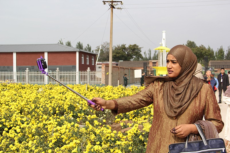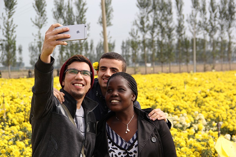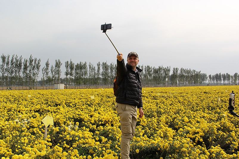 這也在拍,那也在拍,看來這些外國專家對咱們的云臺冰菊很有興趣么~各類膚色的人聚在一起共同賞菊品菊,場面和諧極了,看來不僅藝術(shù)能促進(jìn)各國間的文化交流,農(nóng)業(yè)照樣有聚集人心的魅力啊!